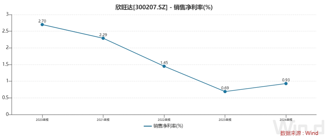 受降价等多方面要素影响,欣旺达的净利率一直处于较低水平,最近两年致使不及1%,盈利智商堪忧。