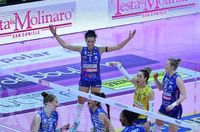 意甲女排联赛名次前4的球队在本轮仅有诺瓦拉受挫,客场2-3不敌佩鲁贾遭受赛季第5败后让出第3的位置,被少赛1场的米兰以2分上风反超跌至第4。