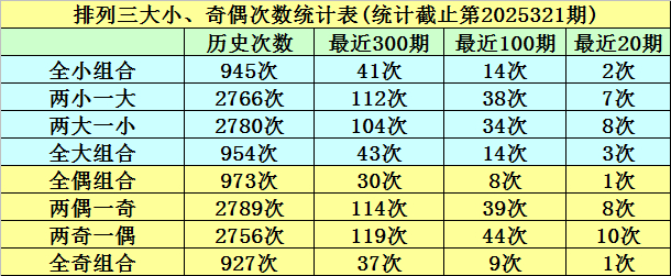 衔接10期奖号中,全大模式开出3期,全小模式开出0期,两小一大模式开出4期,两大一小模式开出3期,本期大小模式判断:两大一小奖号。