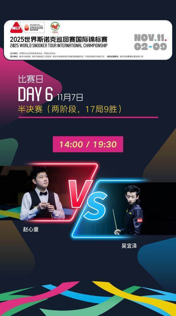 11月7日,2025宇宙斯诺克巡回赛外洋锦标赛行将迎来首场半决赛的比拼,半决赛给与的是17局9胜制,分下昼和晚间两阶段进行,两位中国球员赵心童和吴宜泽将献艺一场芳华风暴,究竟谁能拿到决赛门票,让咱们拭目而待!