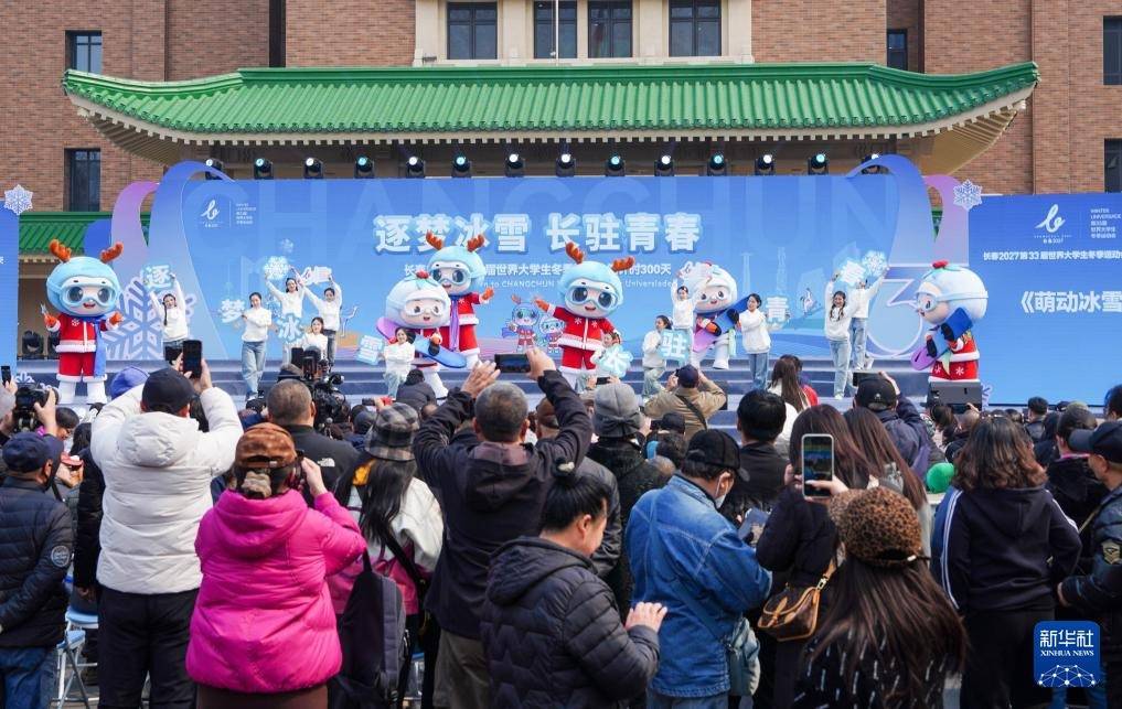 3月21日,长春2027第33届寰宇大学生冬季绽开会动员大会暨倒计时300天系列步履在吉林省长春市举行,步履现场发布了会徽、标语和幽静物。